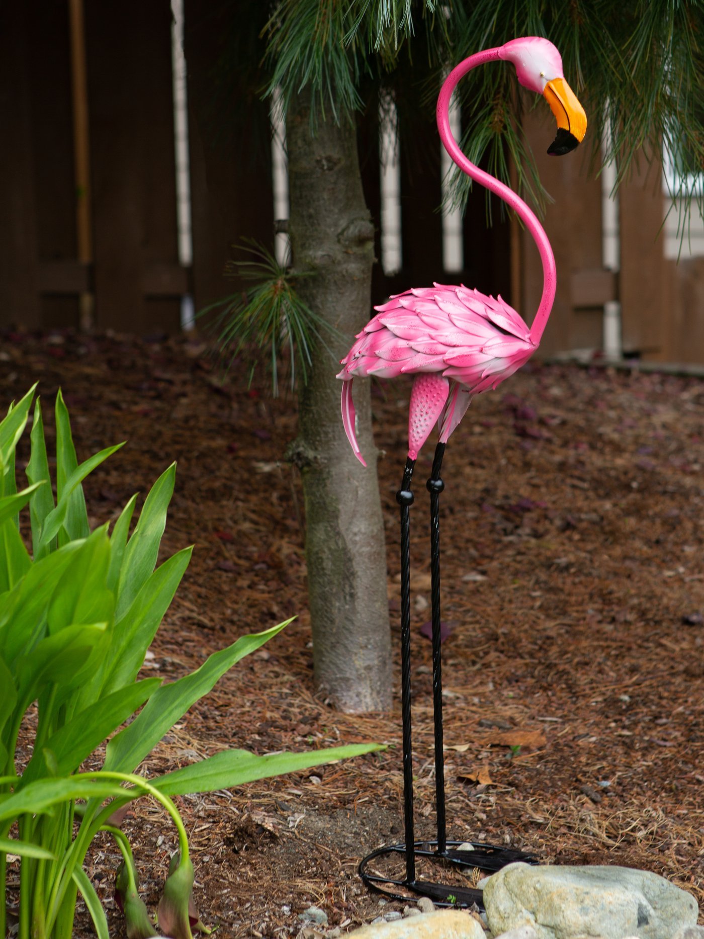 • Irresistibly charming metal flamingo sculpture brightens any room with a taste of the tropics. This statement statue is a great addition to your front walk, garden, or patio!