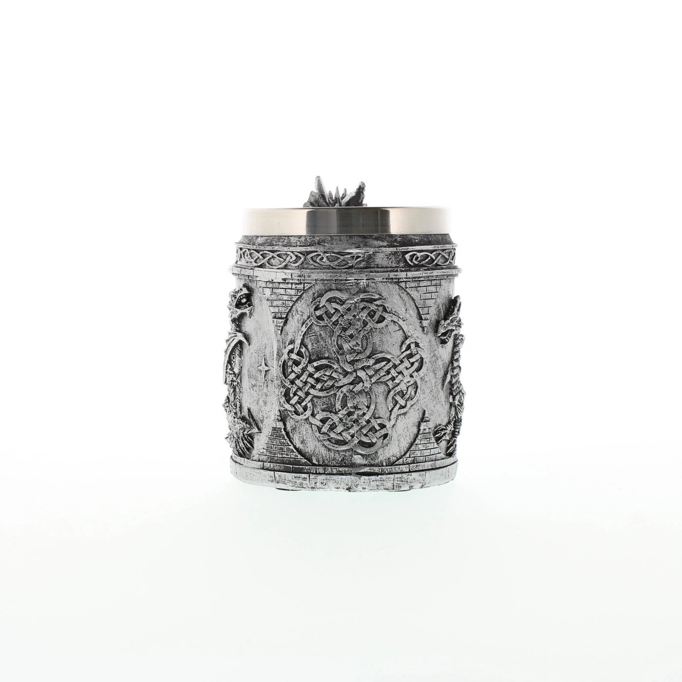 Introducing our premium Stainless Steel Dragon Mug, the perfect blend of durability and style for your beverage needs. Crafted from high-quality stainless steel, this dragon-themed mug is designed to keep your drinks at the ideal temperature while adding a touch of fantasy to your collection. Ideal for coffee, tea, or any beverage of your choice, this mug features an intricately detailed dragon design that is sure to impress. Whether you're at home, in the office, or on an adventure, this stainless steel mug is your go-to choice for a unique drinking experience. Explore the magic and elegance of our Stainless Steel Dragon Mug today and elevate your drinkware collection with this must-have accessory.