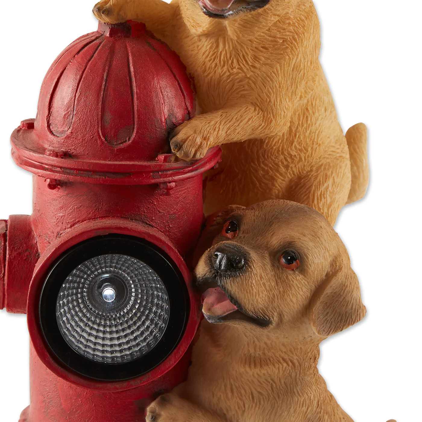• Liven up your outdoor space with this adorable puppy solar light statue featuring two cute pups climbing on a fire hydrant. This adorable solar statue is a great addition to your front walk, garden, or patio.