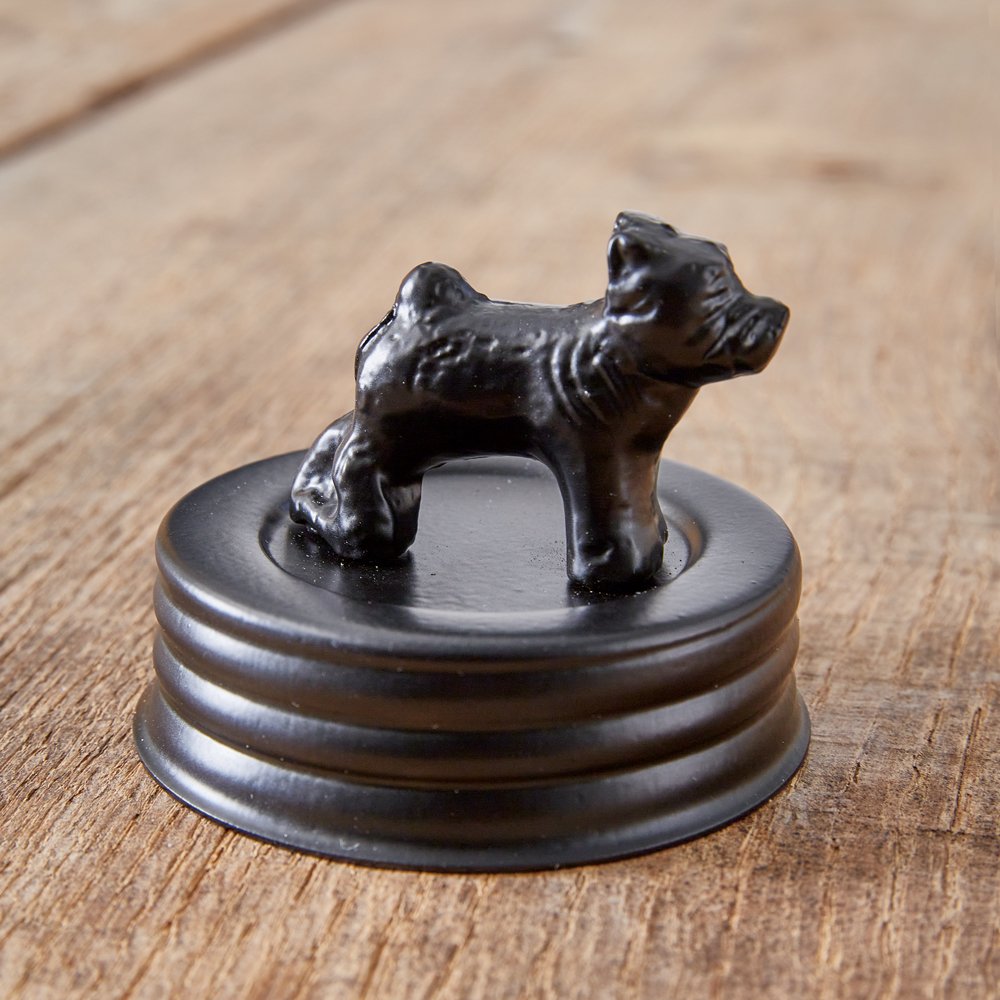 We can't help but spoil our pups with lots of treats! Store them for freshness inside our farmhouse staple mason jar. The jar is created of glass and features embossed lettering with the phrase ''Dog Treats'' on the front. The metal lid features a bulldog on top.