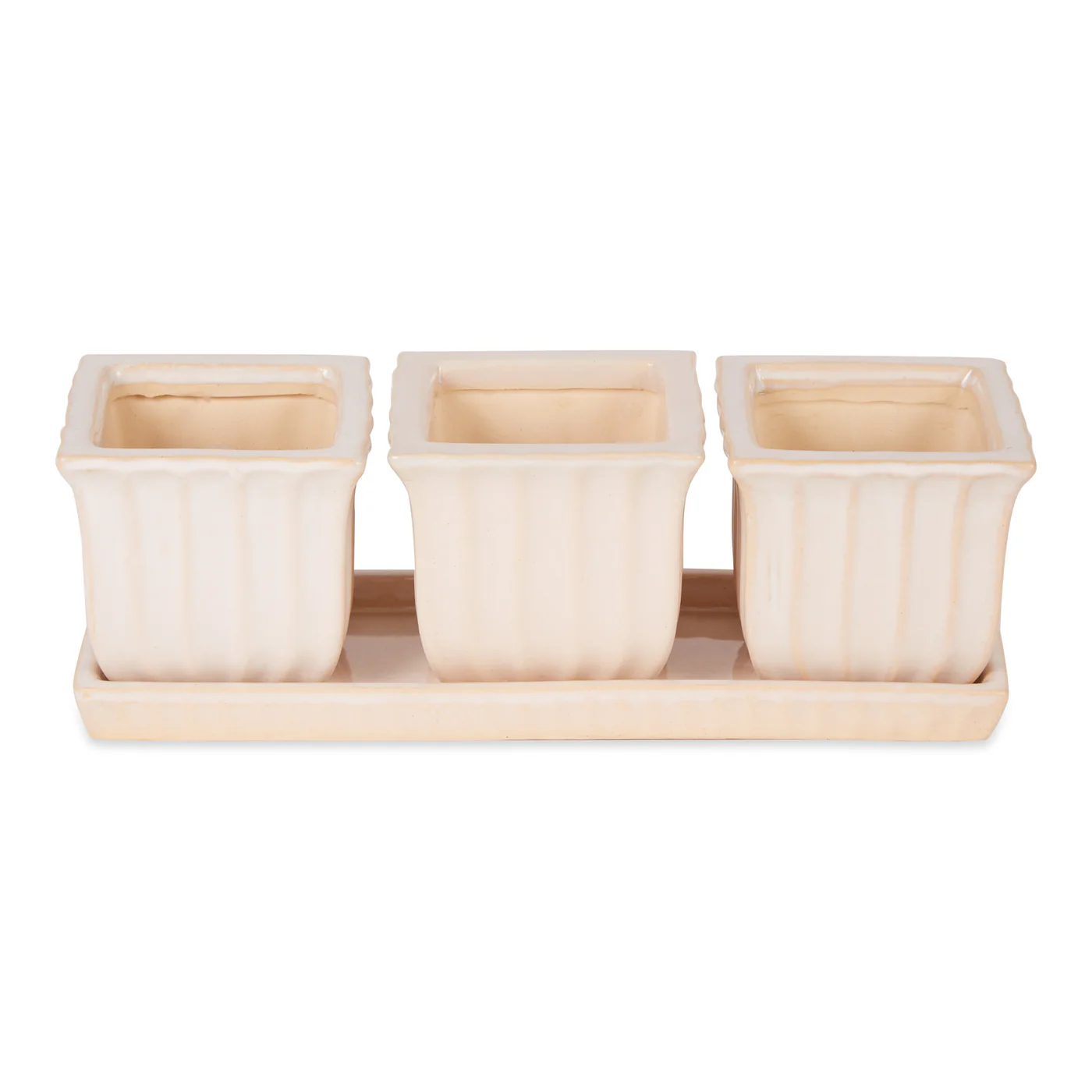 • Ceramic herb planter set measures 12x4x4 inches includes 3 square pots and 1 saucer.